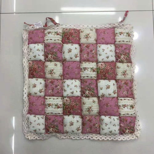Nệm lót ghế ô vuông chần bông phong cách Nhật, kt 40x40cm( có dây buộc)