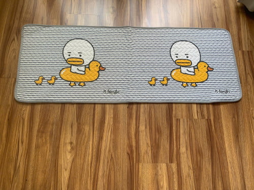 ????Chất liệu: vải ngoài 100% cotton, bông chần bên trong 100% cotton, mặt dưới có gai silicon chống trượt, bám chắc vào bề mặt sàn. Thấm hút nước cực tốt.