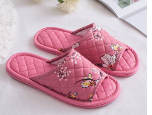 Chất liệu: vải ngoài cotton, bông chần bên trong 100% cotton, mặt dưới có gai silicon chống trượt, bám chắc vào bề mặt sàn. Thấm mồ hôi.Dép vải đi trong nhà, chần bông mỏng vừa, đế kép.