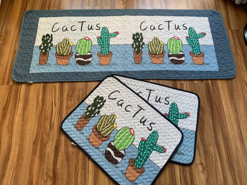 Set thảm chùi chân 2 ngắn + 1 dài ( mẫu xương rồng trắng)